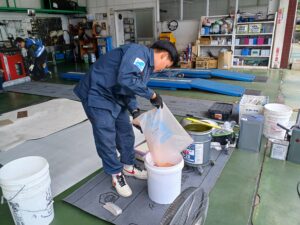 まずは材料の作り方!今日はカパラグリップの赤を使って研修していきますよ!