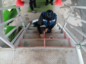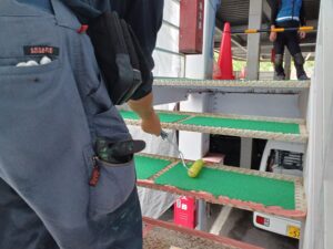 某ゴルフ練習場様にご協力をいただいて、立体駐車場の外階段に