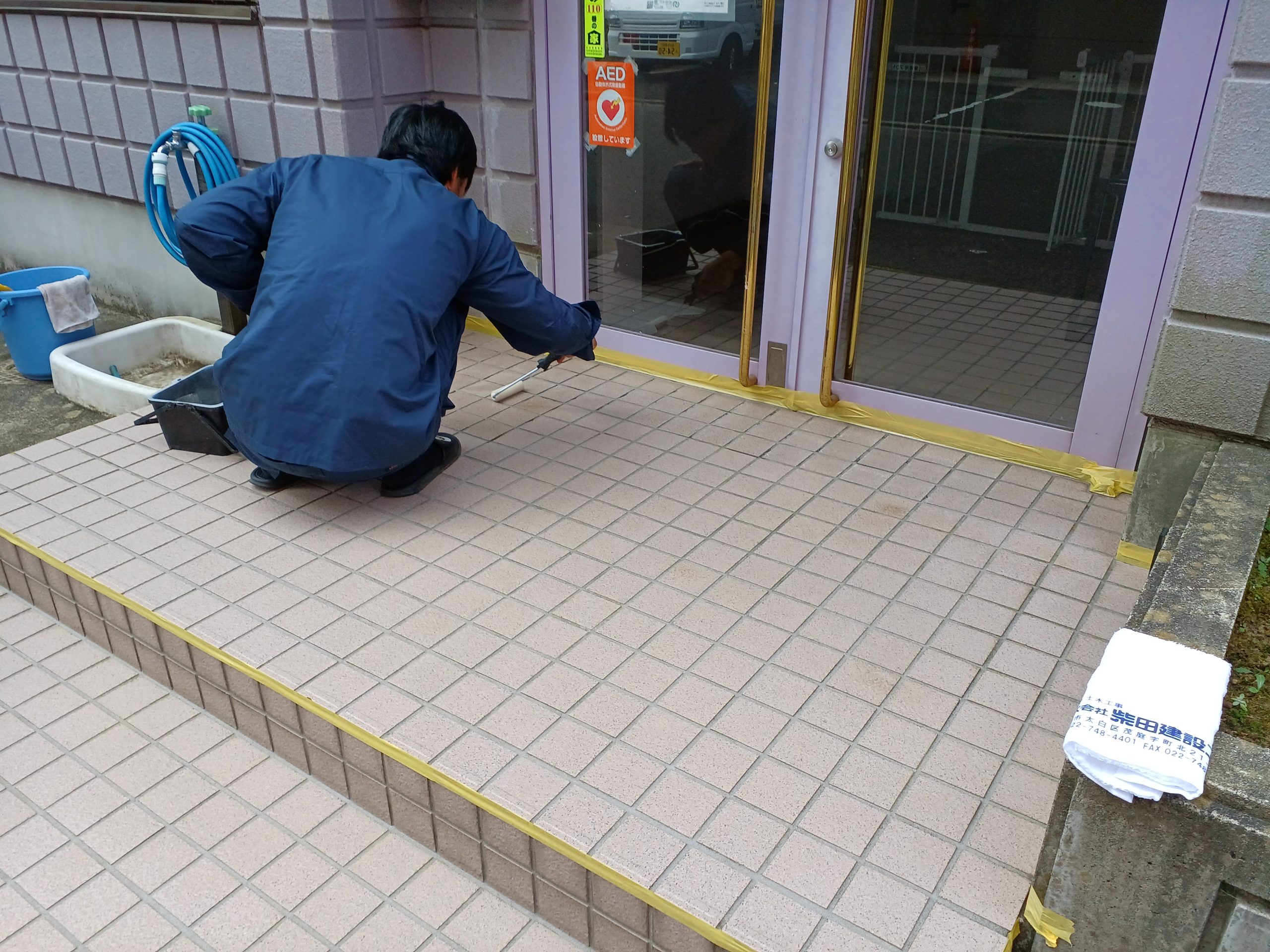 仙台市宮城野区某専門学校様 玄関ポーチタイル防滑施工